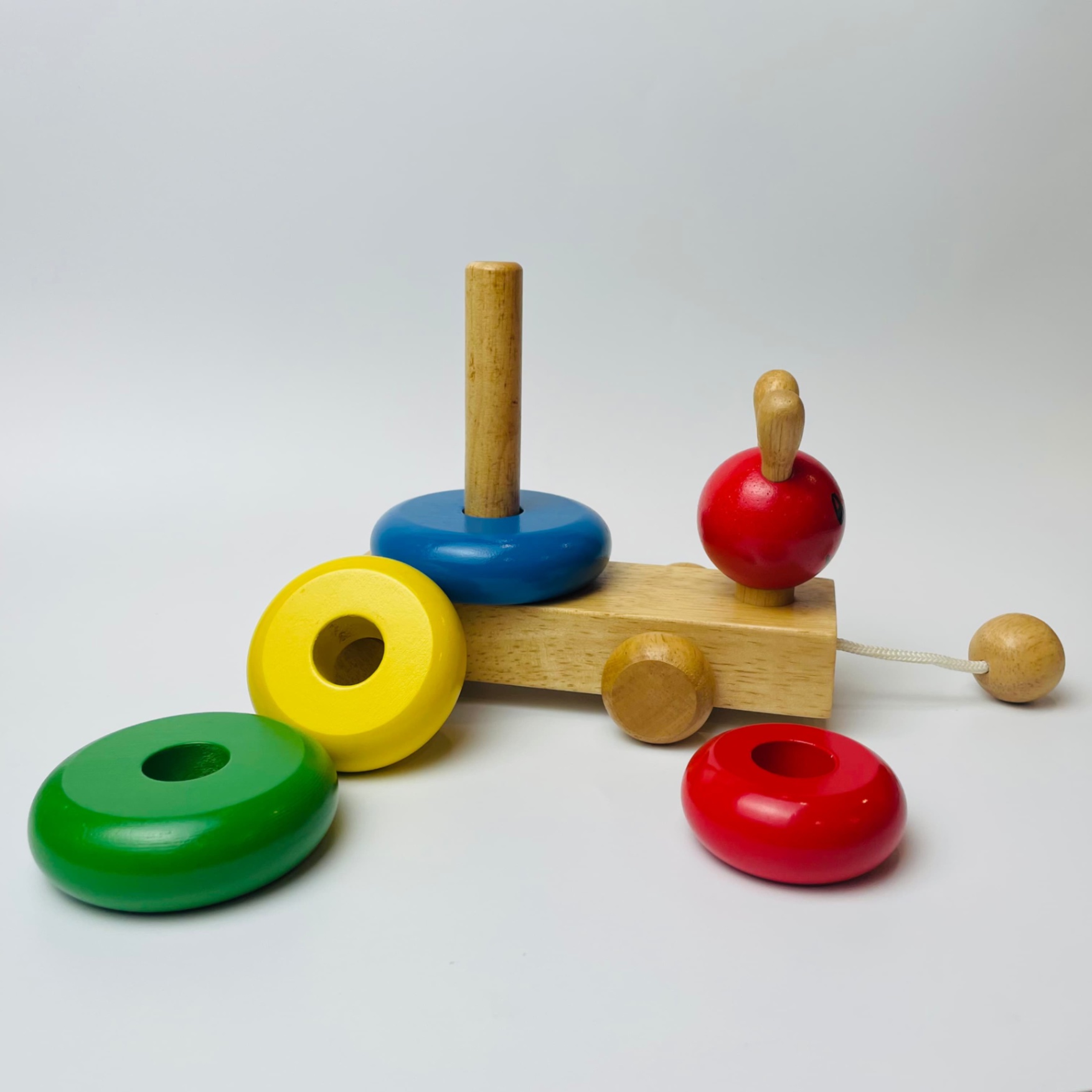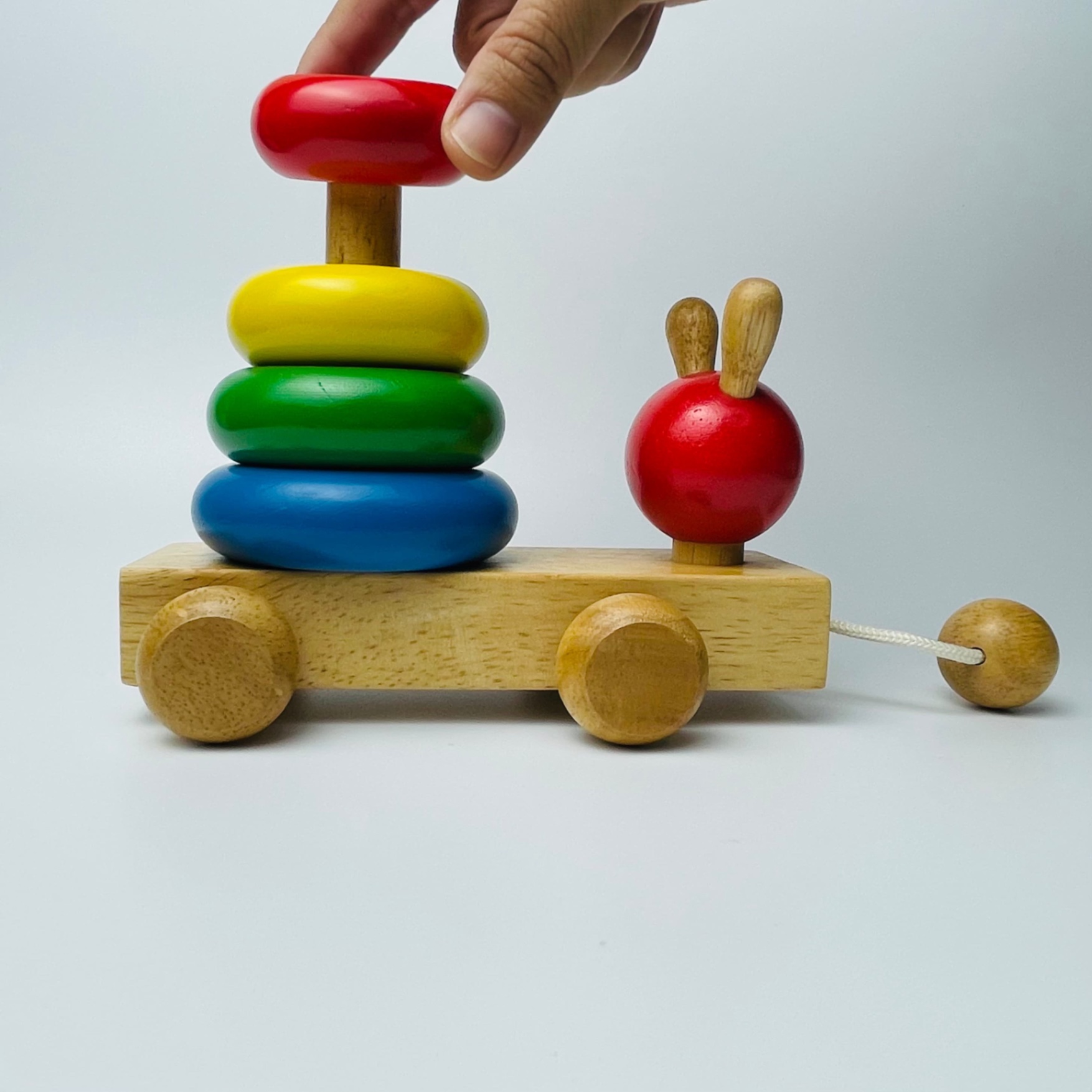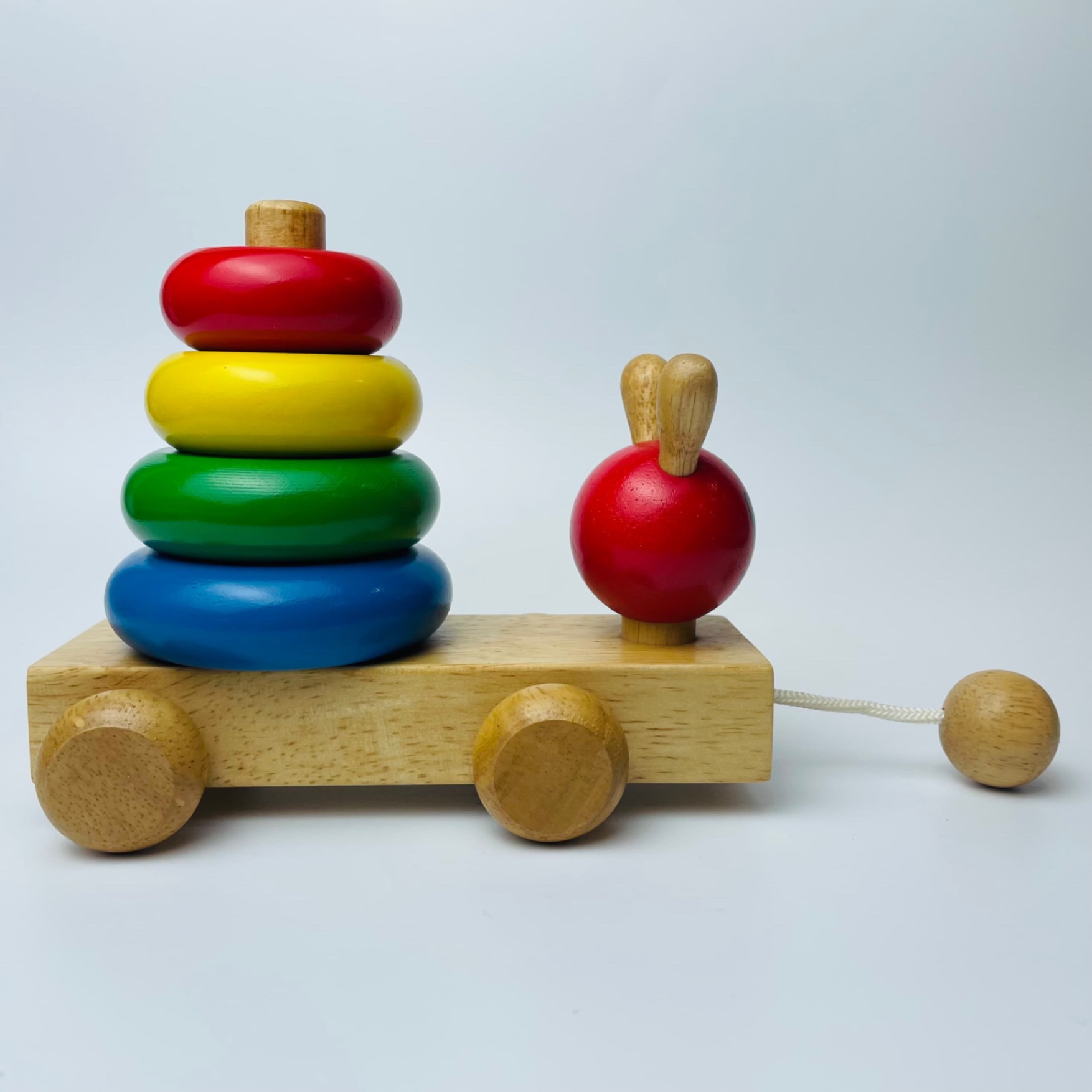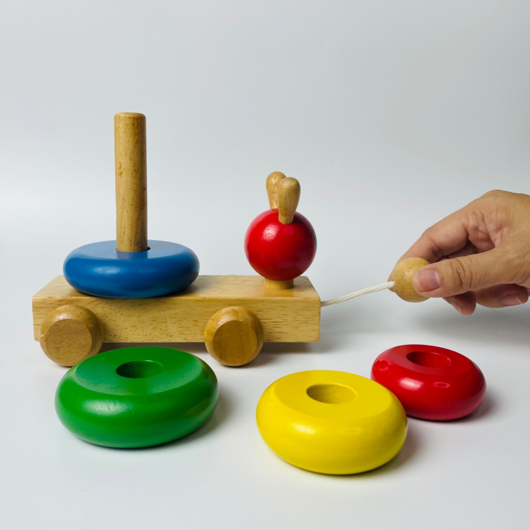 - Sản phẩm bao gồm một bộ tháp cầu vồng gỗ hình dáng ốc sên với bốn vòng tròn có màu sắc đạt chuẩn và kích thước đa dạng khác nhau.